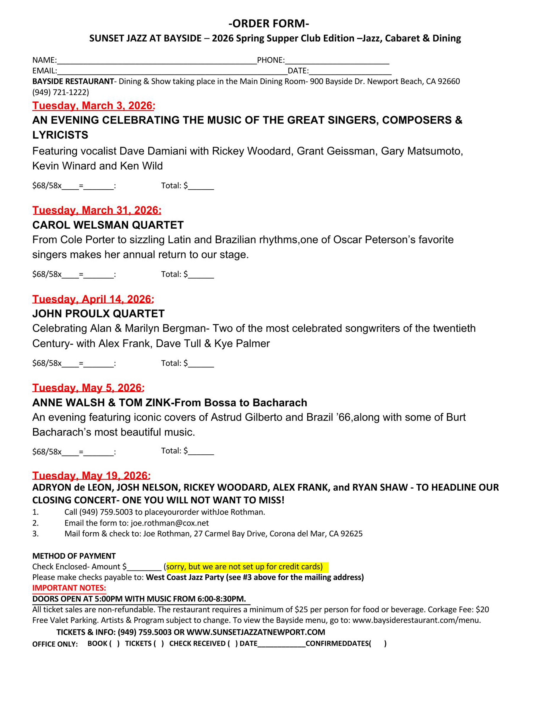 ORDER FORM AND EMAILING